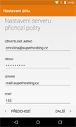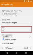 Změňte server pro odchozí poštu na mail.superhosting.cz a nebo na vip-mail.sh.cz (záleží na vaší službě) , port změňte na 25 a klikněte na Další.