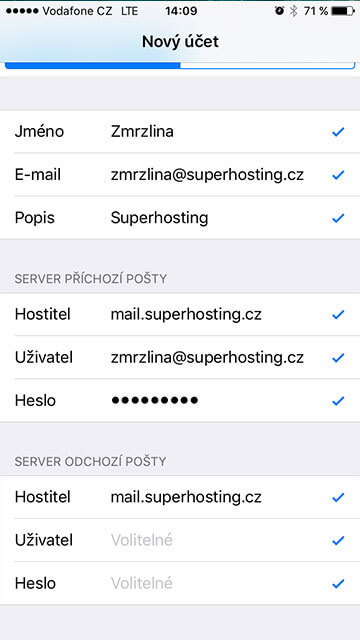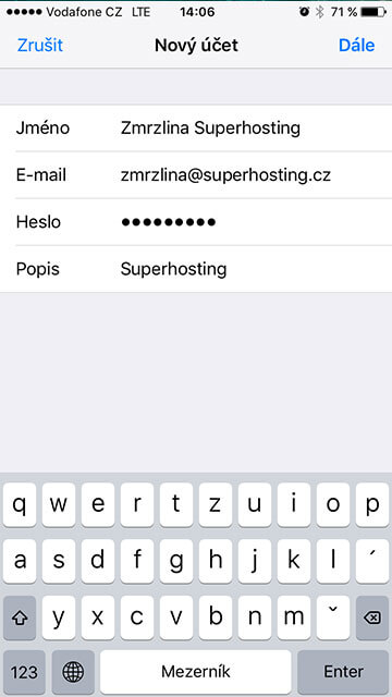 Popis: Popis emailové schránky pro vás v telefonuPo vyplnění kliknout naDále