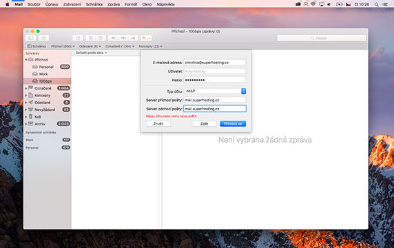 . - Emailový klient v základním nastavení nezná servery SH.cz, tak je nadefinujte ručně.E-mailová adresa: Váš email od SH.cz